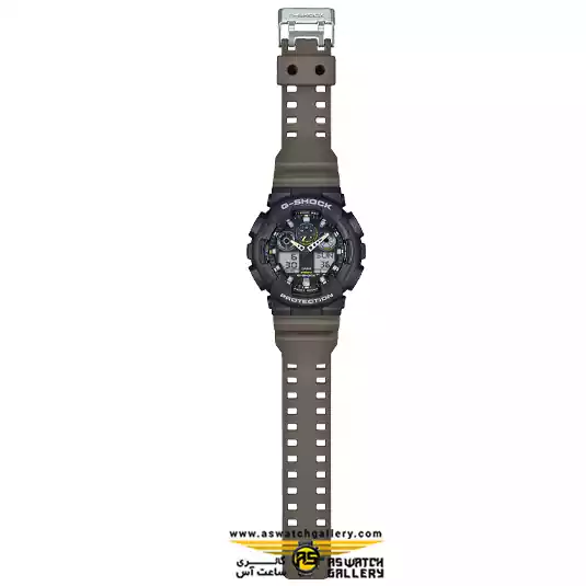 GA-100TU-1A3DR با صفحه مشکی و بند دو رنگ، یادآور طراحی ابزارهای نظامی و صنعتی است. ترکیب رنگهای خاکی و تیره، ظاهری حرفهای، مستحکم و در عین حال مدرن ایجاد کرده است که با هر استایل روزمره یا کاری هماهنگ میشود.